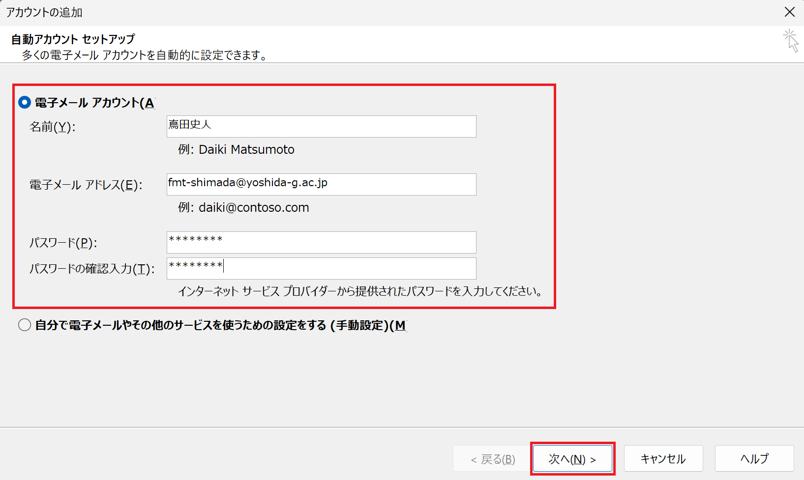 吉田学園 > Exchange Online(Microsoft 365)メール設定手順