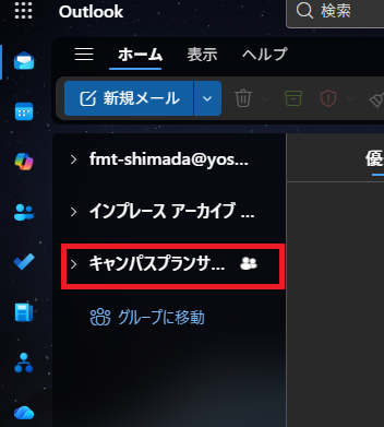- 共有メールボックスへのアクセス権がある方は、Outlook上でメールの送受信が可能です。