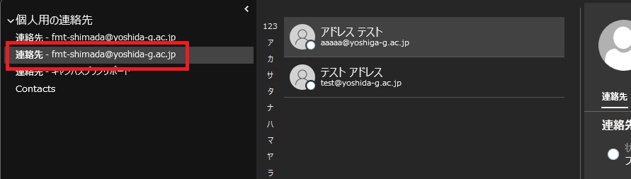 ※同じ名称でわかりにくいですが、下に表示されている「連絡先」です。