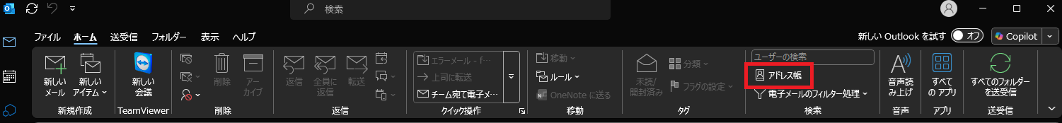 - 「受信トレイ」や「送信済みアイテム」のフォルダを選択した後、「Ctrl+A」を押すとフォルダ内のメールが全選択されます。