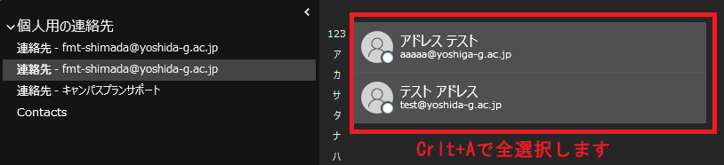 ※同じ名称でわかりにくいですが(旧)「連絡先 – xxxx@yoshida-g.ac.jp」から(新)「連絡先 – xxxx@yoshida-g.ac.jp」にコピーします。